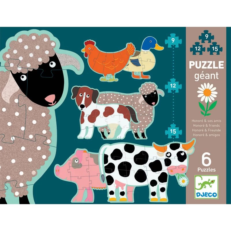Honoré et ses amis est un coffret de puzzles contenant 6 puzzles pour les enfants de 3 ans :