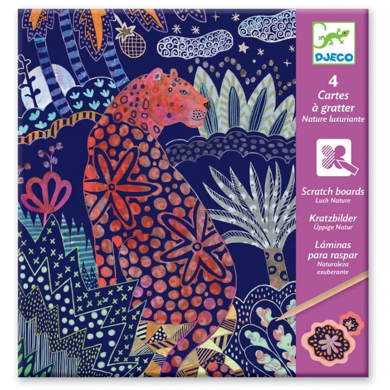 Djeco vous plonge au cœur de la savane avec son nouveau coffret de cartes à gratter Nature Luxuriante. Ce coffret contient 4 tableaux à réaliser représentant des animaux de la savane au milieu d’une nature riche et colorée.