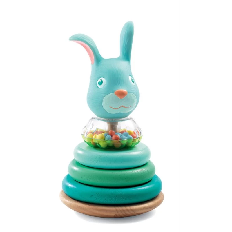 Cascarott est un jouet d’anneaux à empiler sous la forme d’une pyramide surmontée d’un sympathique lapin. Les enfants s’amuseront à reconstituer le lapin en empilant les anneaux dans le bon ordre et en terminant avec la tête de Cascarott.