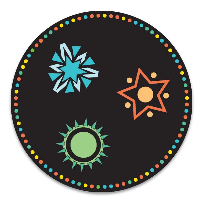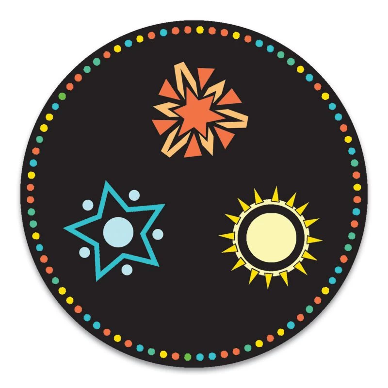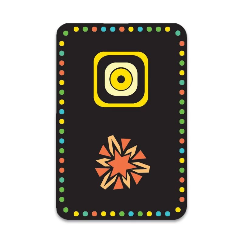 Les cartes rondes sont systématiquement retournées face cachée. Il faudra donc se souvenir des motifs présents sur ces cartes. La partie s’arrête lorsque la pioche de carte rectangulaire est vide, c’est alors celui qui en a remporté le plus qui gagne la partie.