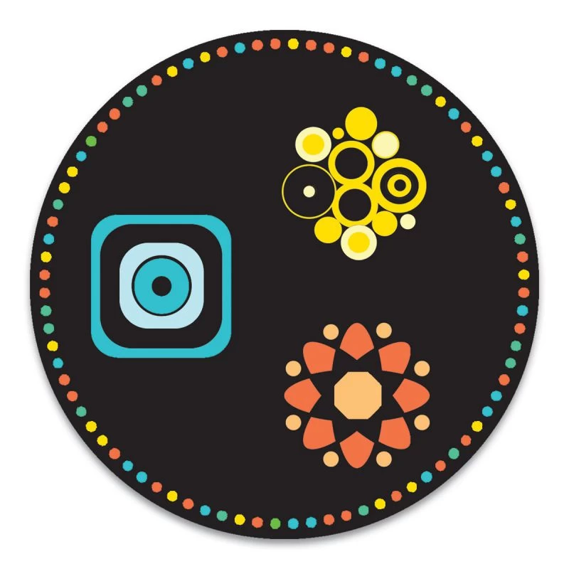 Geomemorix est un jeu de carte très graphique avec de jolis motifs géométriques colorés dessinés sur des cartes à fond noir. Le jeu est composé de 8 grandes cartes rondes et de 42 cartes rectangulaires. Les 8 cartes rondes sont disposées face cachée devant les joueurs qui vont tour à tour retourner des cartes rectangulaires et essayer de retrouver au moins un symbole présent sur cette carte sur les cartes rondes.