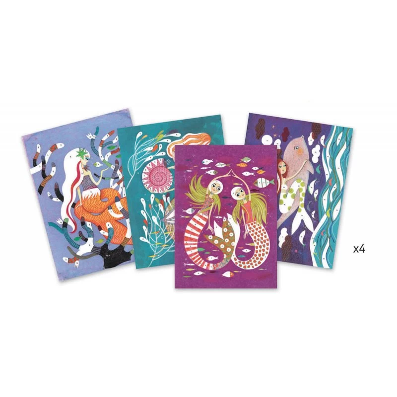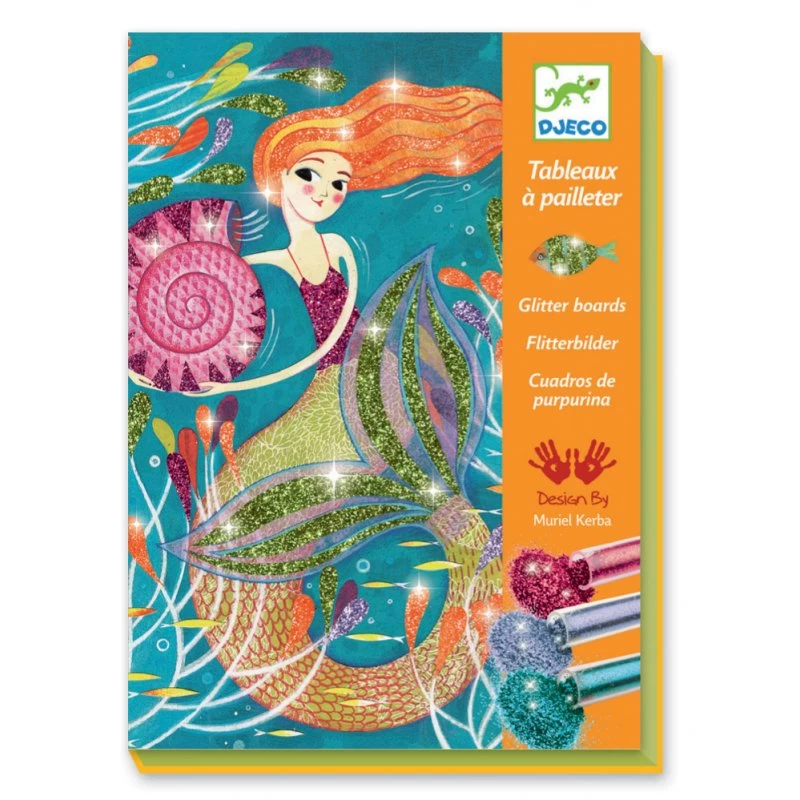 Avec ce coffret de loisir créatif Djeco, votre enfant pourra réaliser 4 magnifiques tableaux représentant des sirènes. Il contient tout le nécessaire pour la réalisation : les 6 tubes de paillettes, les 4 jolis tableaux, un outil pour décoller les parties à recouvrir de paillettes, un pinceau pour enlever le surplus et le livret explicatif. Le tout est livré dans une ravissante boîte qui fait de ce coffret une belle idée de cadeau.