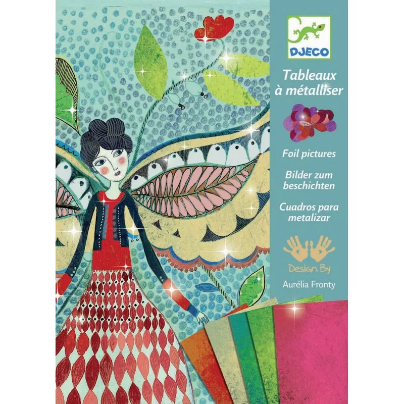 Les tableaux à métalliser sont des activités créatives très ludiques qui donnent des résultats épatants. Le coffret « les lucioles » de Djeco contient 4 tableaux poétiques où il faudra enlever les parties encollées pour y apposer les feuilles de métal à l’aide du stylet. Ceci déposera une fine couche de métal brillant et au fur à mesure dévoilera un très joli tableau.