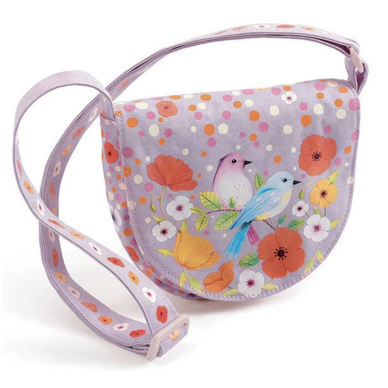 Le sac à main et ses accessoires de Lucy est un joli sac en coton de la marque Djeco. Délicatement illustré de fleurs et d’oiseaux ce sac à main dans les tons roses est accompagné d’accessoires qui permettront à votre enfant d’imiter leur maman.
