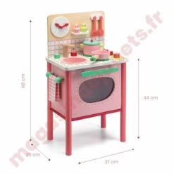 Une belle planche à découper joliment décorée et des fruits en bois en plusieurs morceaux maintenus par des velcros. Le couteau également en bois permettra de découper les fruits en détachant le velcro ce qui aura pour effet de produire un bruit qui participera à l’amusement de l’enfant.