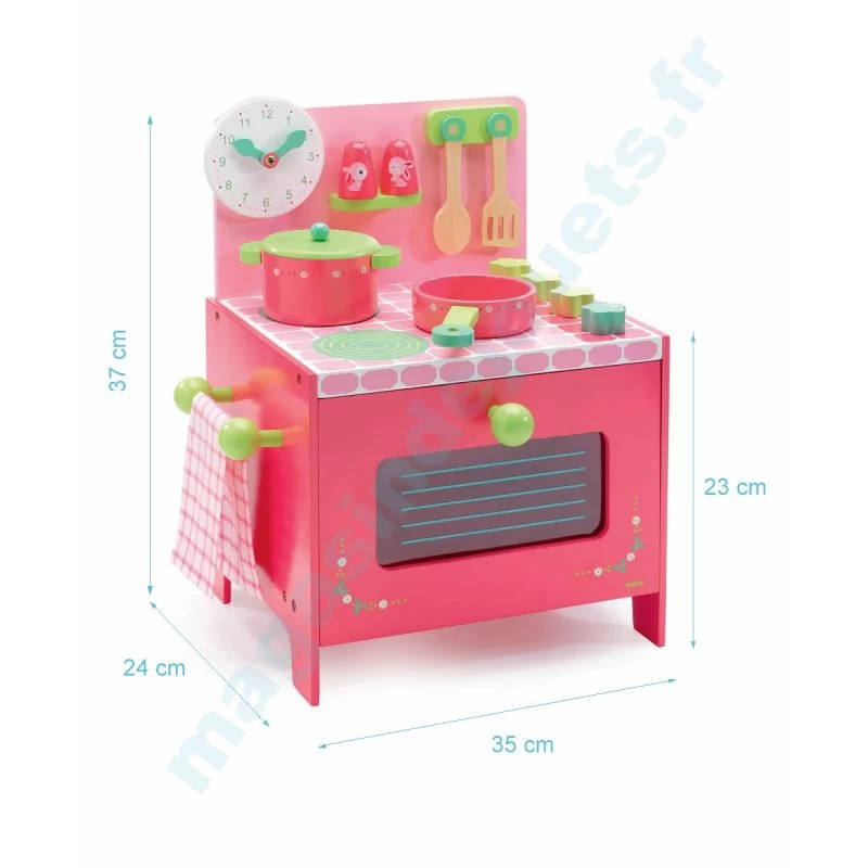 La cuisinière de Lili Rose de Djeco est un petite cuisinière en bois spécialement conçue pour les petites filles qui vont adorer son look et surtout ses couleurs pimpantes. Sa taille contenue lui permettra de trouver facilement une place dans la chambre de votre petite fille.