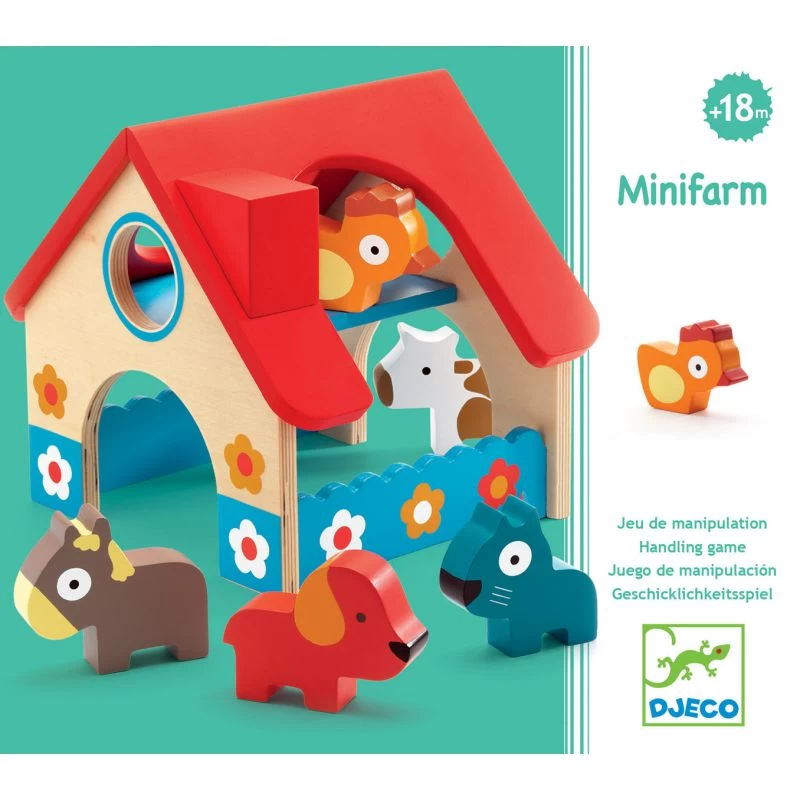 Minifarm est une petite ferme en bois avec des animaux tout mignon pour que les petits dès 18 mois puissent imaginer leurs premières histoires. La ferme étable est joliment décorée de petites fleurs et possède deux niveaux. Elle est suffisamment ouverte pour faciliter le jeu des petits qui devront néanmoins faire preuve d’habileté pour ranger tous les animaux dans la ferme. C’est là aussi tout l’intérêt de ce jeu de manipulation qui leur fera travailler la motricité fine.