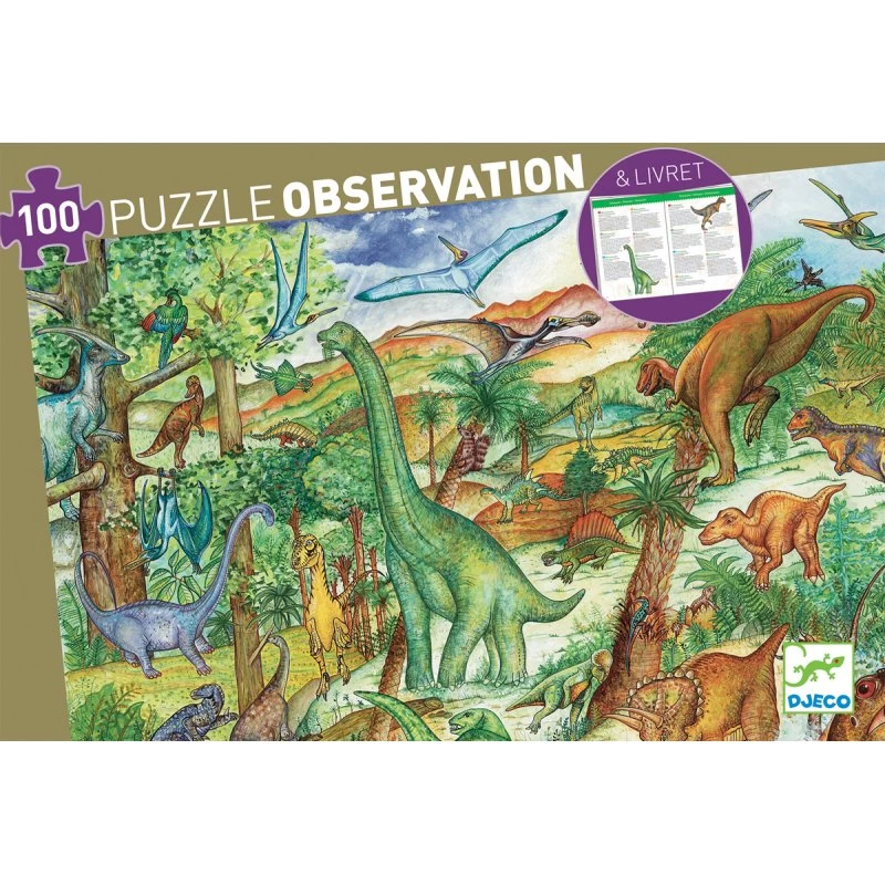 Découvrir les dinosaures en s’amusant ! Un puzzle de 100 pièces, un poster et un livret décrivant leurs caractéristiques et leur mode de vie. Contenu : puzzle carton de 100 pièces (61 x 38 cm), un poster et un livret.