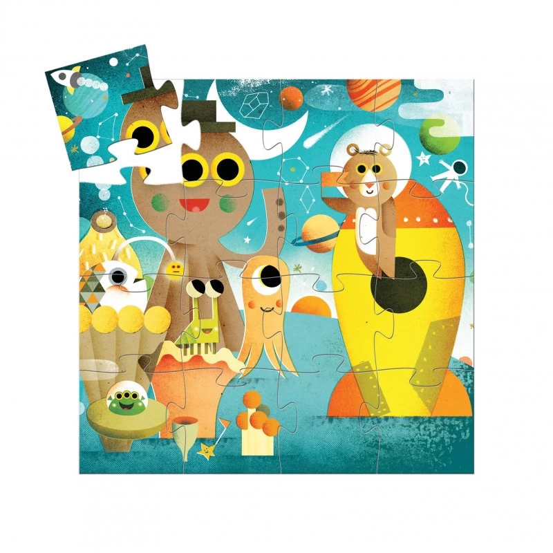 Très joli puzzle d’une scène illustrée sur le thème de l’espace. Ce puzzle de 16 pièces pour les enfants de 3 ans est livré dans un joli coffret silhouette en forme de fusée