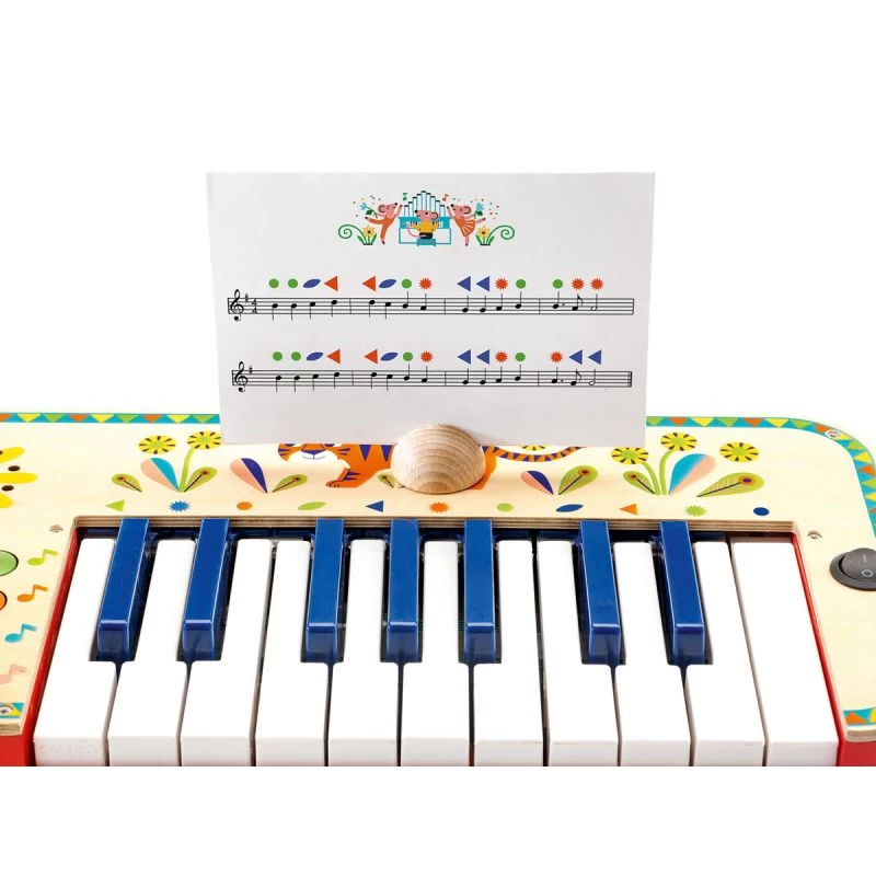Avec le synthétiseur Animambo de Djeco votre enfant va pouvoir découvrir différentes sonorités d’instrument et s’initier aux joies de la musique. Il pourra au choix jouer du saxophone, du piano, de l’orgue ou du vibraphone en sélectionnant l’instrument correspondant sur le synthétiseur. A chaque changement, une petite musique de démonstration lui permettra d’écouter l’instrument sélectionné.